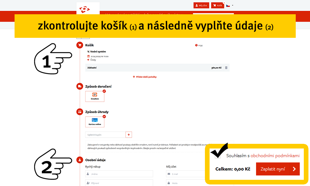 Nákup vstupenky zvládne každý. Pomůže Vám i pětice návodných obrázků níže v galerii. Podmínkou úspěšného zakoupení online vstupenek je mít svojí bankou povolené platby kartou na internetových stránkách.
