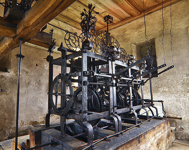 Věž sýpky schovává ve svých útrobách jedinečnou technickou památku – velký hodinový stroj z roku 1686. Tento stroj, sestavený bez jediného šroubu jen pomocí spojů a závlaček, je dodnes denně ručně natahován.