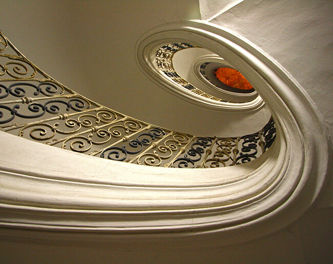 Podle plánů Jana Blažeje Santiniho Aichela byla v budově konventu postupně realizována čtyři samonosná schodiště. Dvě spojující přízemí s půdním prostorem a dvě trojramenná v rizalitech rajského dvora.