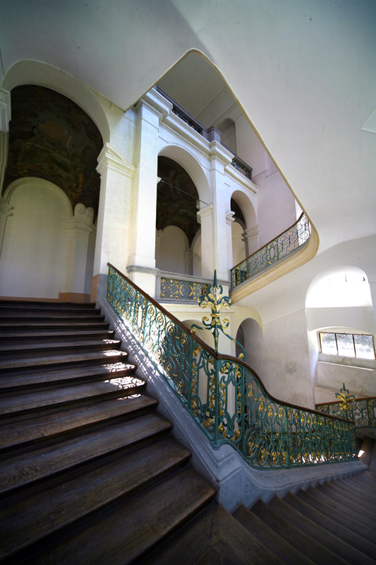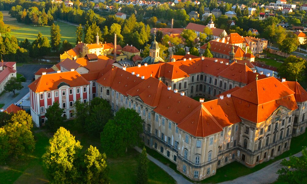 During the tour, we pass through a cloister hallway decorated with Baroque frescoes by the painters Jakub Antonín Pink, František Antonín Müller and Josef Kramolín. We will also see artwork by the painter Kryštof Liška or the sculptor Matyáš Bernard Braun. We will take you to the meditation chapel of St. Bernard, the Capitular Hall, and visit the hospital wing with a display of pharmacies and unique Baroque toilets that are flushed by the Střela River. We will also view the library hall, the abbot’s study, the former reading room and the winter refectory. The commentary includes information on the sophisticated technical design of the foundations of the convent building, which was built "on water". Throughout the tour, you will be able to admire Santini's breath taking architecture, such as the self-supporting spiral staircases as well as a range of ubiquitous details.